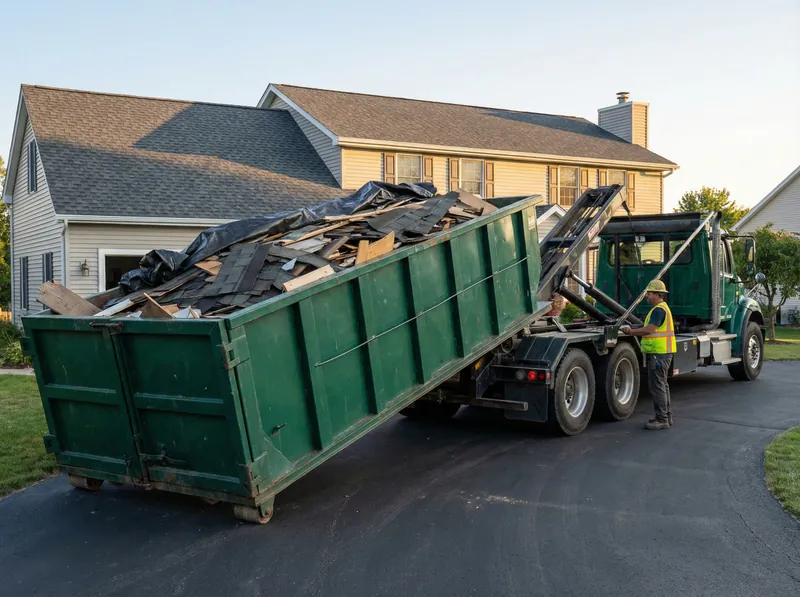 20-yard dumpster for complete roof tear-off. Delivered same-day.